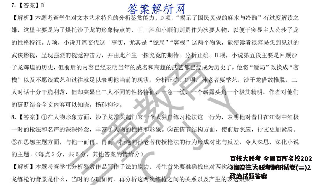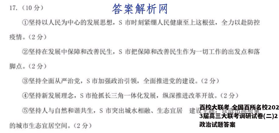 百校大联考 全国百所名校2023届高三大联考调研试卷(二)2政治试题答案