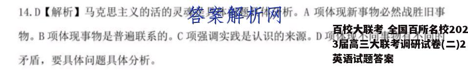 百校大联考 全国百所名校2023届高三大联考调研试卷(二)2英语试题答案,目前全国100所名校答案网已经汇总了百校大联考 全国百所名校2023届高三大联考调研试卷(二)2英语试题答案的各科答案和试卷,更多全国100所名校答案请关注本网站。