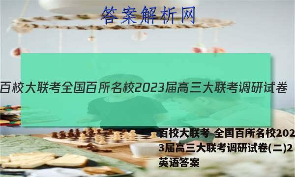 百校大联考 全国百所名校2023届高三大联考调研试卷(二)2英语答案,目前全国100所名校答案网已经汇总了百校大联考 全国百所名校2023届高三大联考调研试卷(二)2英语答案的各科答案和试卷,更多全国100所名校答案请关注本网站。
