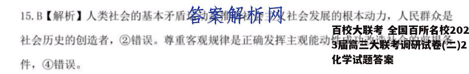 百校大联考 全国百所名校2023届高三大联考调研试卷(二)2化学试题答案,目前全国100所名校答案网已经汇总了百校大联考 全国百所名校2023届高三大联考调研试卷(二)2化学试题答案的各科答案和试卷,更多全国100所名校答案请关注本网站。