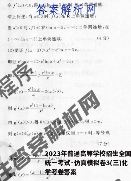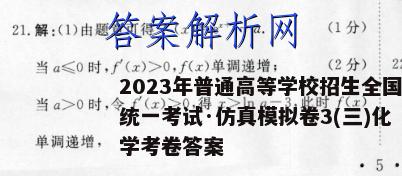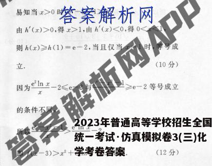 2023年普通高等学校招生全国统一考试·仿真模拟卷3(三)化学考卷答案,目前全国100所名校答案网已经汇总了2023年...
