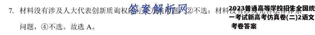 2023普通高等学校招生全国统一考试新高考仿真卷(二)2语文考卷答案,目前全国100所名校答案网已经汇总了2023普...