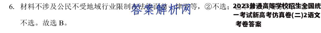 2023普通高等学校招生全国统一考试新高考仿真卷(二)2语文 考卷答案