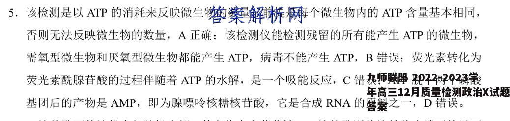 九师联盟 2022-2023学年高三12月质量检测政治X试题答案