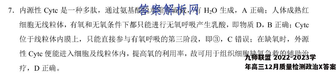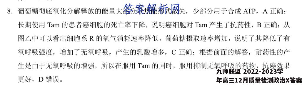 九师联盟 2022-2023学年高三12月质量检测政治X答案