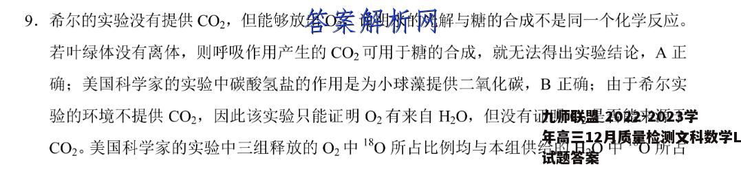 九师联盟 2022-2023学年高三12月质量检测文科数学L试题答案,目前全国100所名校答案网已经汇总了九师联盟 2022-2023学年高三12月质量检测文科数学L试题答案的各科答案和试卷,更多全国100所名校答案请关注本网站。