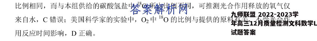 九师联盟2022-2023学年高三12月质量检测文科数学L试题答案,目前全国100所名校答案网已经汇总了九师联盟2...