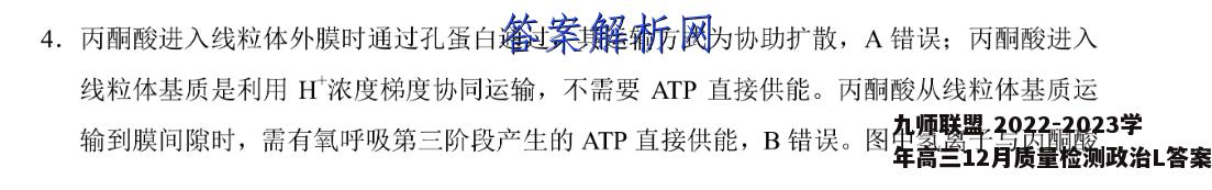 九师联盟 2022-2023学年高三12月质量检测政治L答案