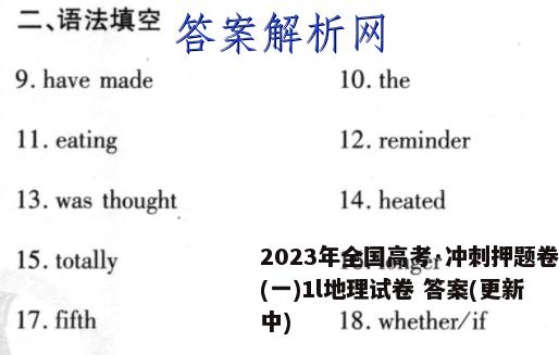 2023年全国高考·冲刺押题卷(一)1l地理试卷答案(更新中),目前全国100所名校答案网已经汇总了2023年全国高...