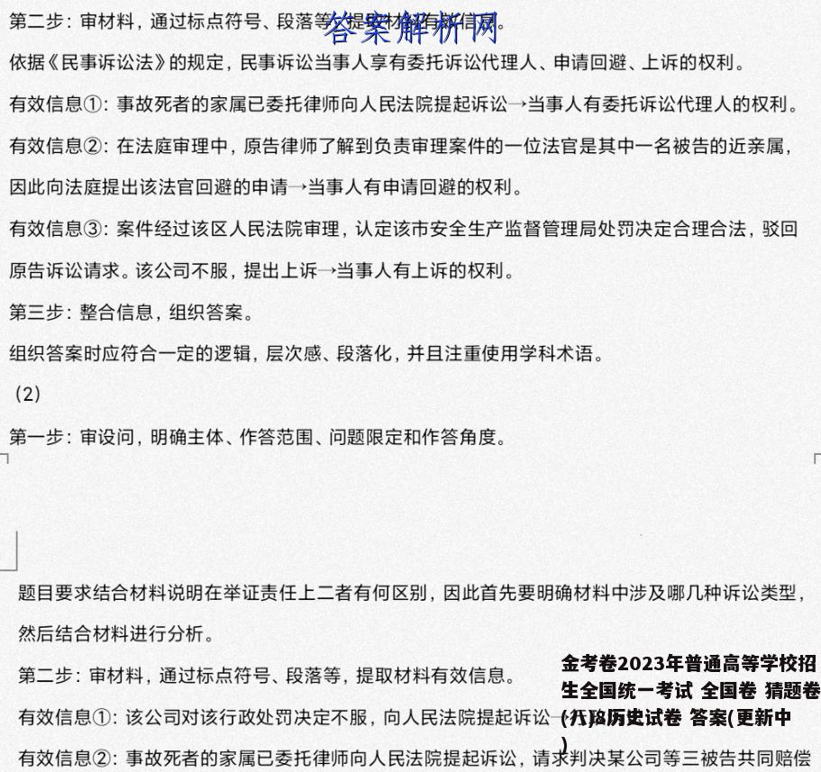 金考卷2023年普通高等学校招生全国统一考试 全国卷 猜题卷(八)8历史试卷 答案(更新中),目前全国100所名校答案网已经汇总了金考卷2023年普通高等学校招生全国统一考试 全国卷 猜题卷(八)8历史试卷 答案(更新中)的各科答案和试卷,更多全国100所名校答案请关注本网站。