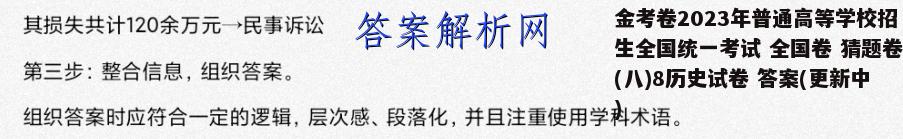 金考卷2023年普通高等学校招生全国统一考试 全国卷 猜题卷(八)8历史试卷 答案(更新中)