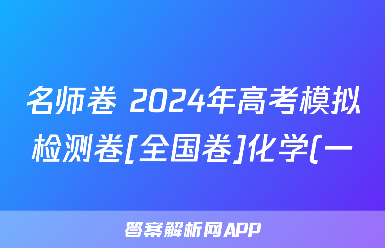 名师卷 2024年高考模拟检测卷[全国卷]化学(一)1答案正在持续更新,目前答案城为大家整理了相关试题及答案,供大家查缺补漏,高效提升成绩。