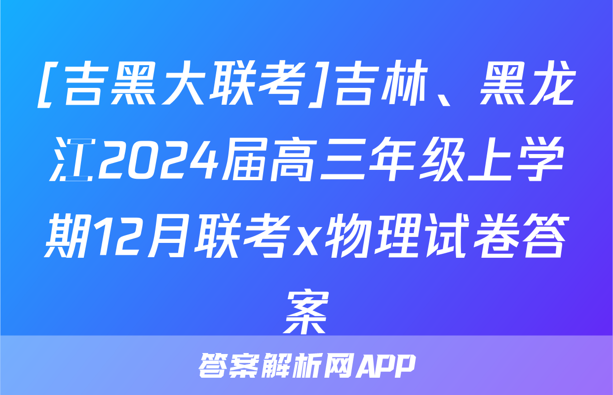[吉黑大联考]吉林、黑龙江2024届高三年级上学期12月联考x物理试卷答案正在持续更新,目前答案城为大家整理了相关试题及答案,供大家查缺补漏,高效提升成绩。