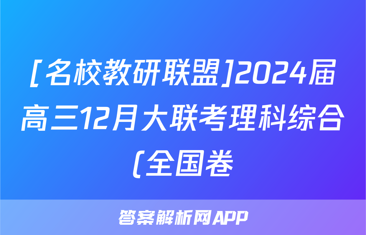[名校教研联盟]2024届高三12月大联考理科综合(全国卷)试题正在持续更新,目前答案城为大家整理了相关试题及答案,供大家查缺补漏,高效提升成绩。