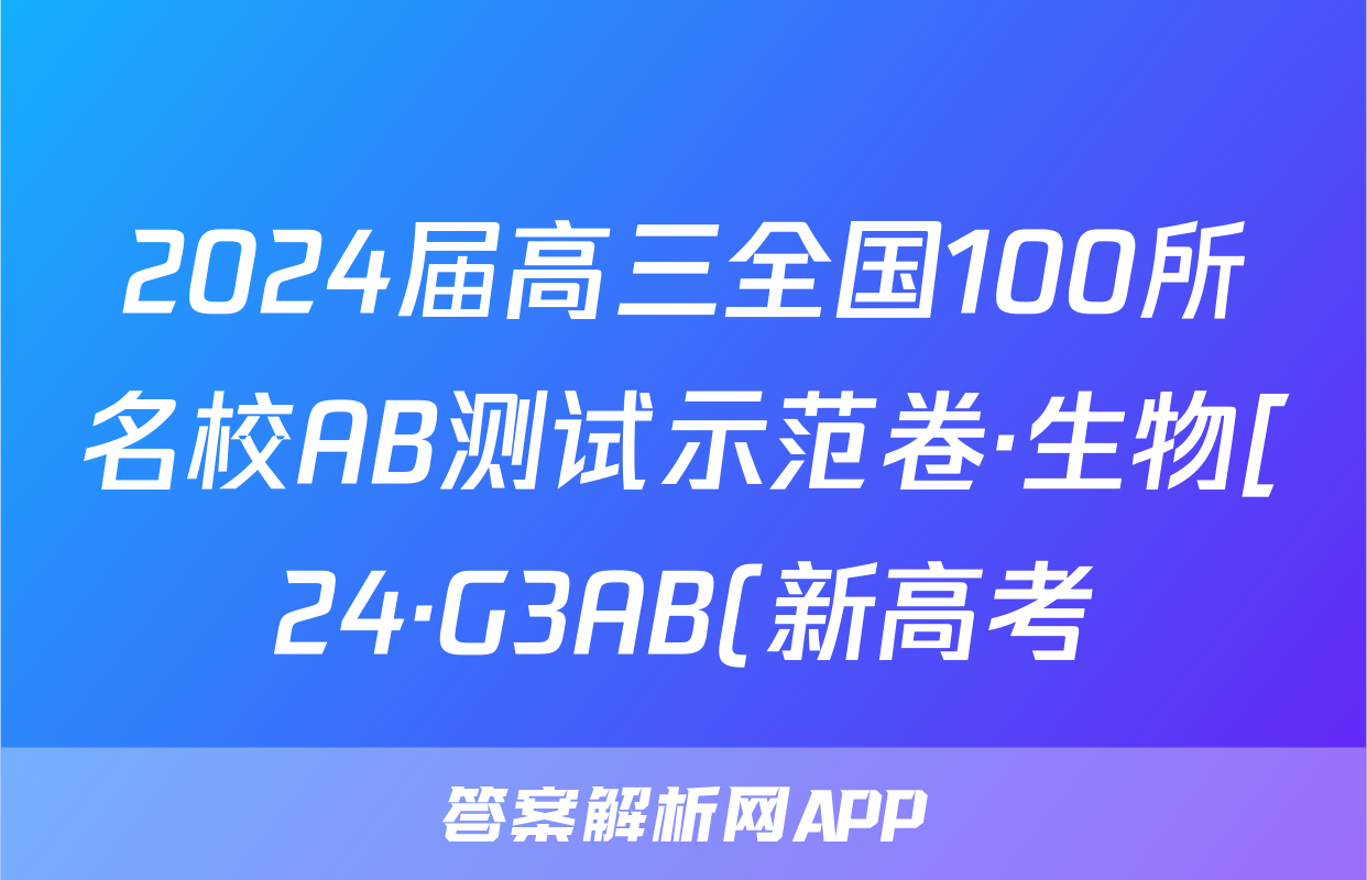 2024届高三全国100所名校AB测试示范卷·生物[24·G3AB(新高考)·生物-R-必考-HEB]三试题正在持续更新,目前答案城为大家整理了相关试题及答案,供大家查缺补漏,高效提升成绩。