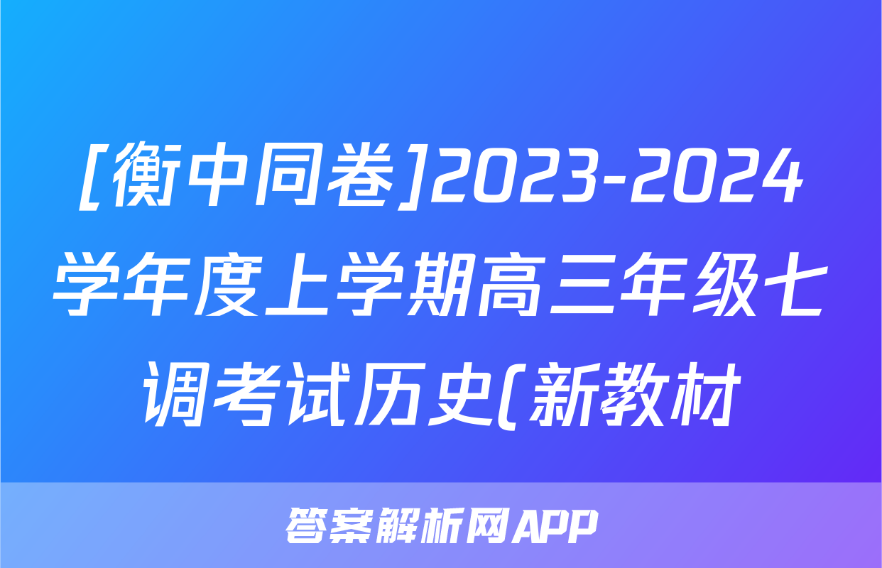[衡中同卷]2023-2024学年度上学期高三年级七调考试历史(新教材)试题正在持续更新,目前答案城为大家整理了相关试题及答案,供大家查缺补漏,高效提升成绩。