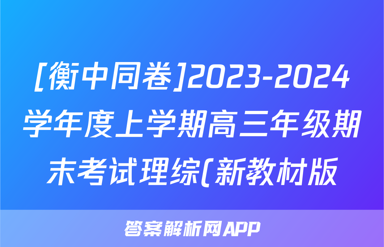 [衡中同卷]2023-2024学年度上学期高三年级期末考试理综(新教材版)答案正在持续更新,目前答案城为大家整理了相关试题及答案,供大家查缺补漏,高效提升成绩。