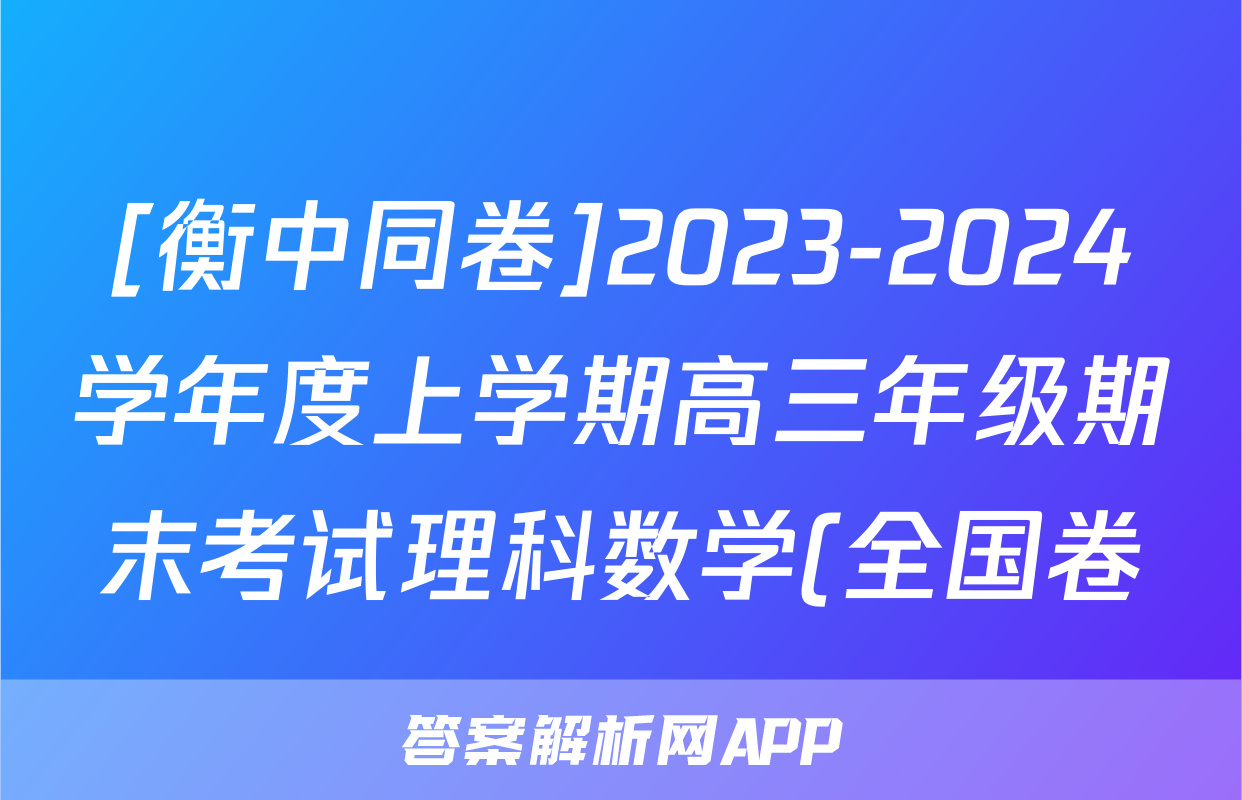 [衡中同卷]2023-2024学年度上学期高三年级期末考试理科数学(全国卷)答案正在持续更新,目前答案城为大家整理了相关试题及答案,供大家查缺补漏,高效提升成绩。