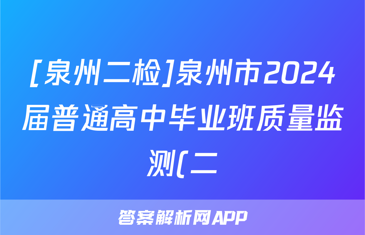 [泉州二检]泉州市2024届普通高中毕业班质量监测(二)2英语答案正在持续更新,目前答案城为大家整理了相关试题及答案,供大家查缺补漏,高效提升成绩。
