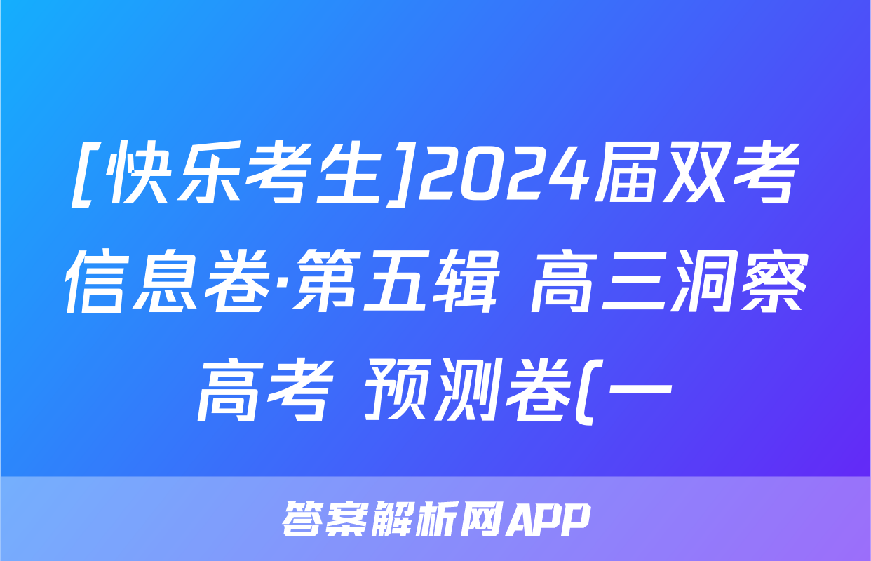 [快乐考生]2024届双考信息卷·第五辑 高三洞察高考 预测卷(一)1语文答案正在持续更新,目前答案城为大家整理了相关试题及答案,供大家查缺补漏,高效提升成绩。