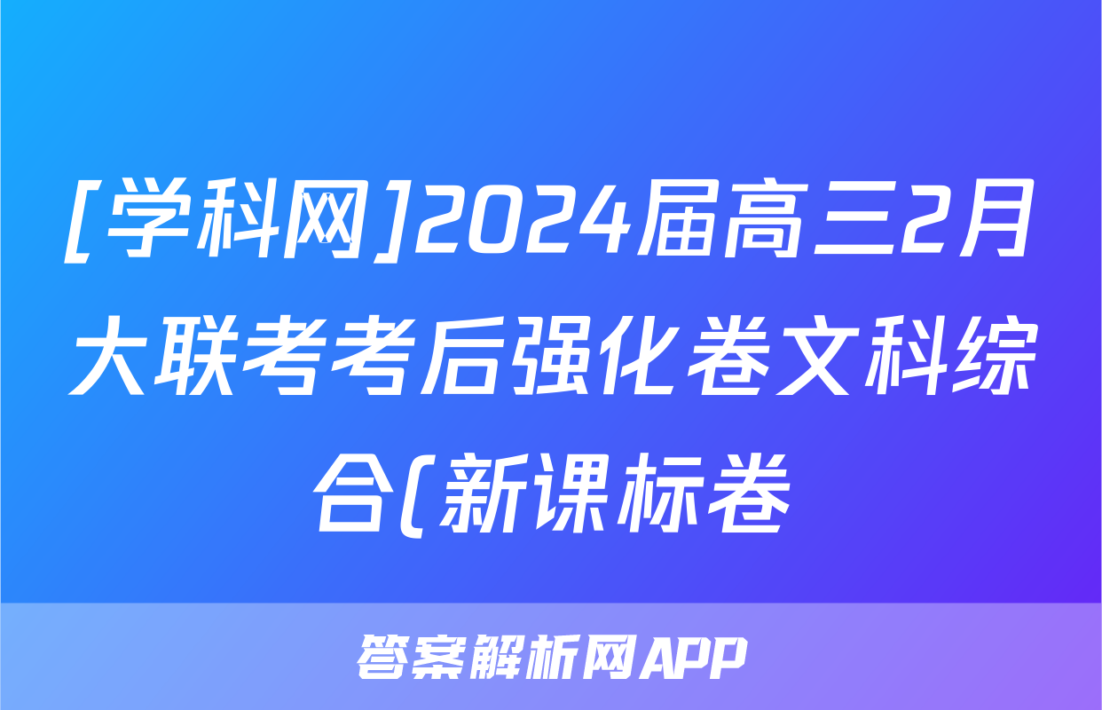 [学科网]2024届高三2月大联考考后强化卷文科综合(新课标卷)(新疆专用)答案正在持续更新,目前答案城为大家整理了相关试题及答案,供大家查缺补漏,高效提升成绩。