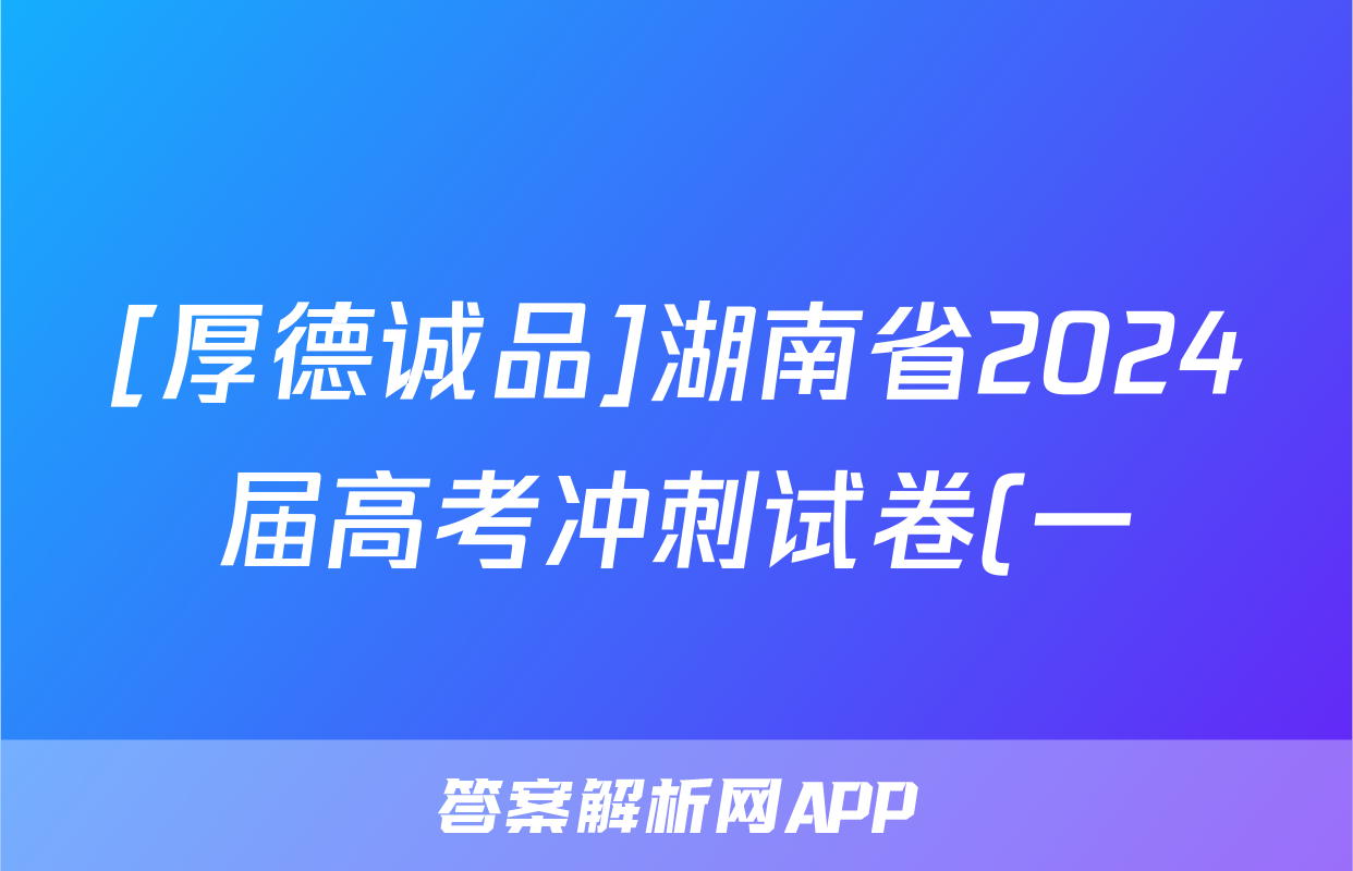 1、厚德诚品 湖南省2024年高考冲刺试卷(一)1英语答案