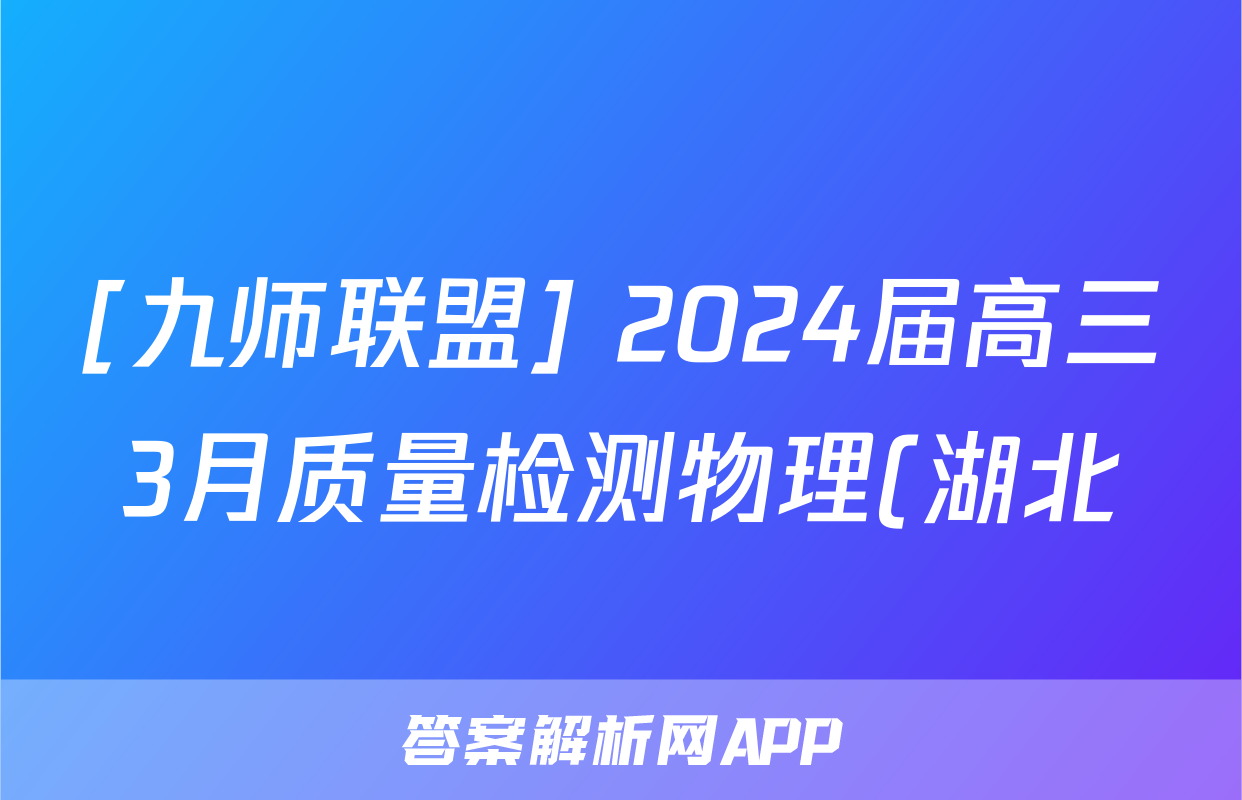 [九师联盟] 2024届高三3月质量检测物理(湖北)试题正在持续更新,目前答案城为大家整理了相关试题及答案,供大家查缺补漏,高效提升成绩。
