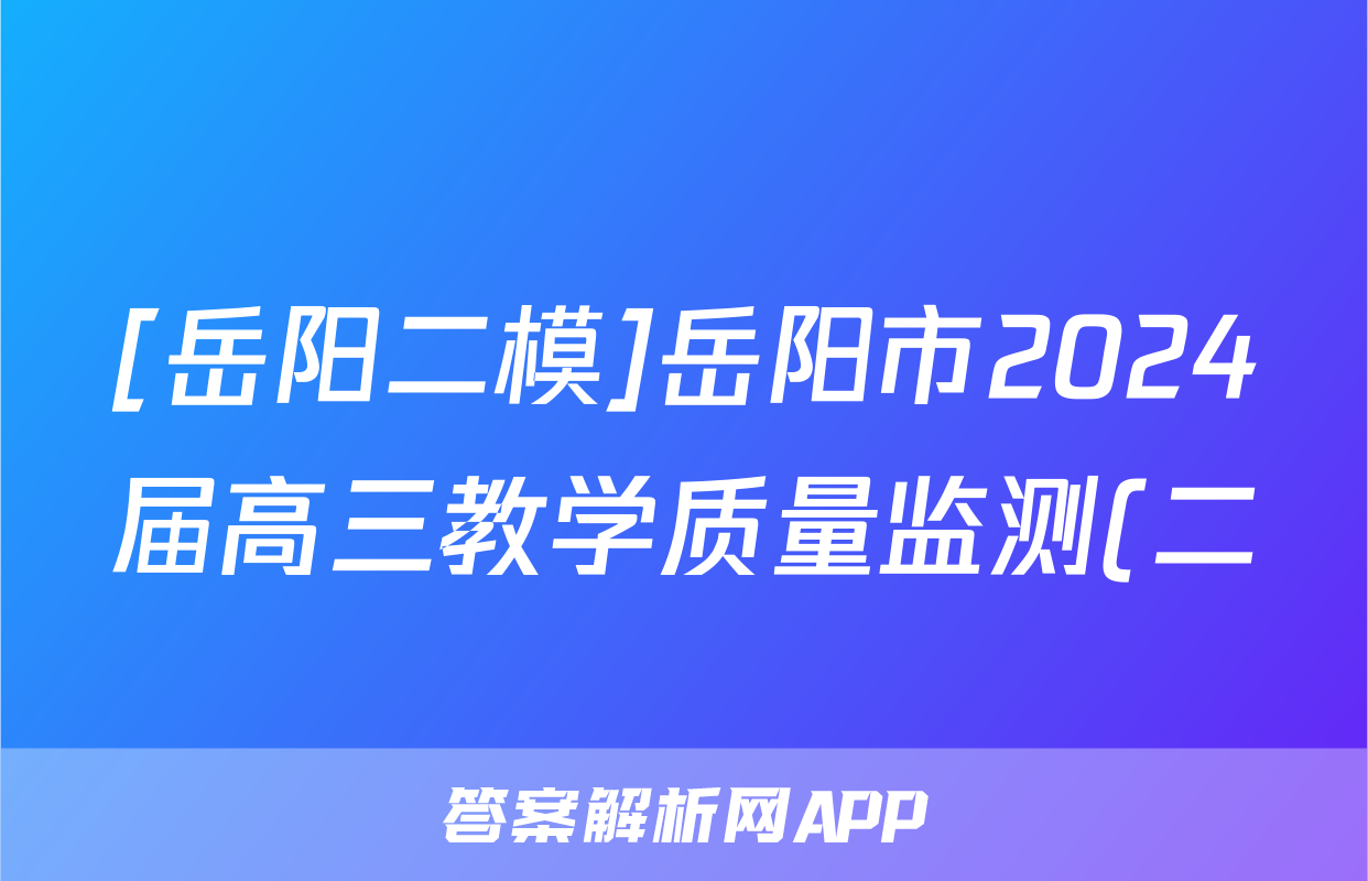 [岳阳二模]岳阳市2024届高三教学质量监测(二)2物理答案正在持续更新,目前答案城为大家整理了相关试题及答案,供大家查缺补漏,高效提升成绩。