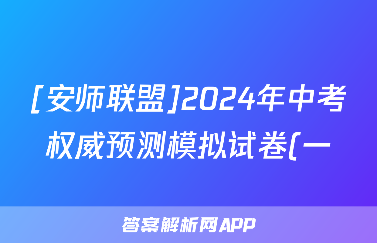 [安师联盟]2024年中考权威预测模拟试卷(一)1物理答案正在持续更新,目前答案城为大家整理了相关试题及答案,供大家查缺补漏,高效提升成绩。