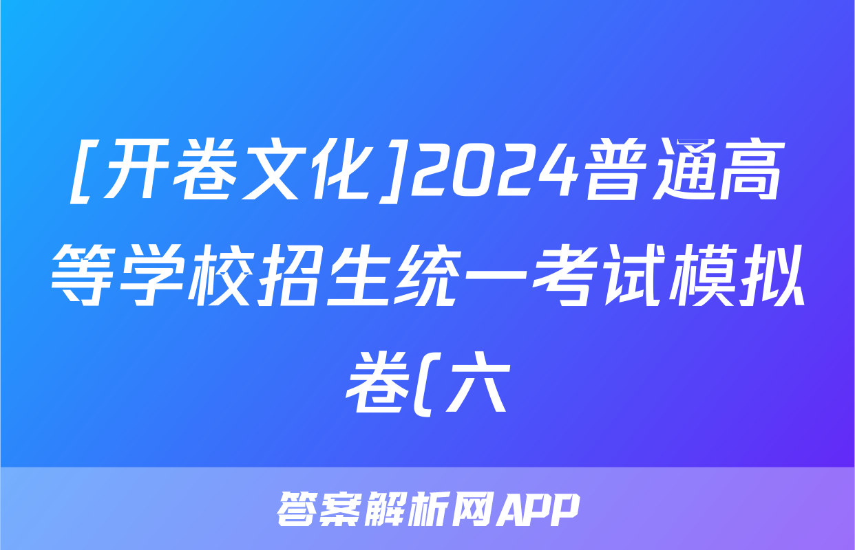 [开卷文化]2024普通高等学校招生统一考试模拟卷(六)6地理XN试题正在持续更新,目前答案城为大家整理了相关试题及答案,供大家查缺补漏,高效提升成绩。