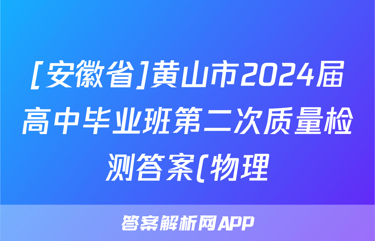 [安徽省]黄山市2024届高中毕业班第二次质量检测答案(物理)正在持续更新,目前答案城为大家整理了相关试题及答案,供大家查缺补漏,高效提升成绩。