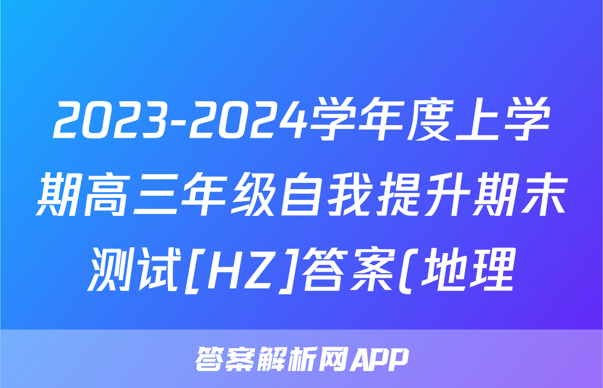 2023-2024学年度上学期高三年级自我提升期末测试[HZ]答案(地理)正在持续更新,目前答案城为大家整理了相关试题及答案,供大家查缺补漏,高效提升成绩。