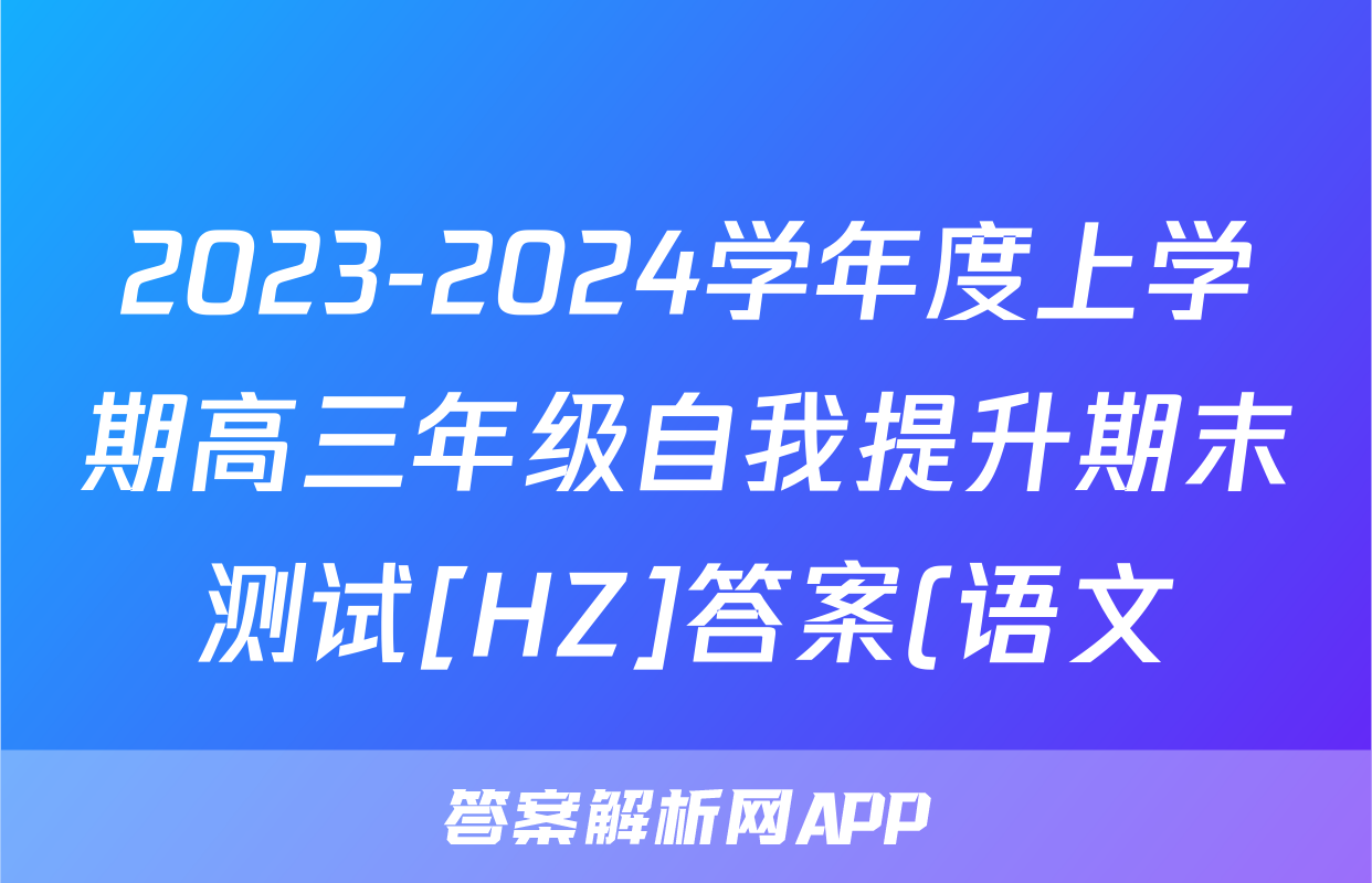 2023-2024学年度上学期高三年级自我提升期末测试[HZ]答案(语文)正在持续更新,目前答案城为大家整理了相关试题及答案,供大家查缺补漏,高效提升成绩。