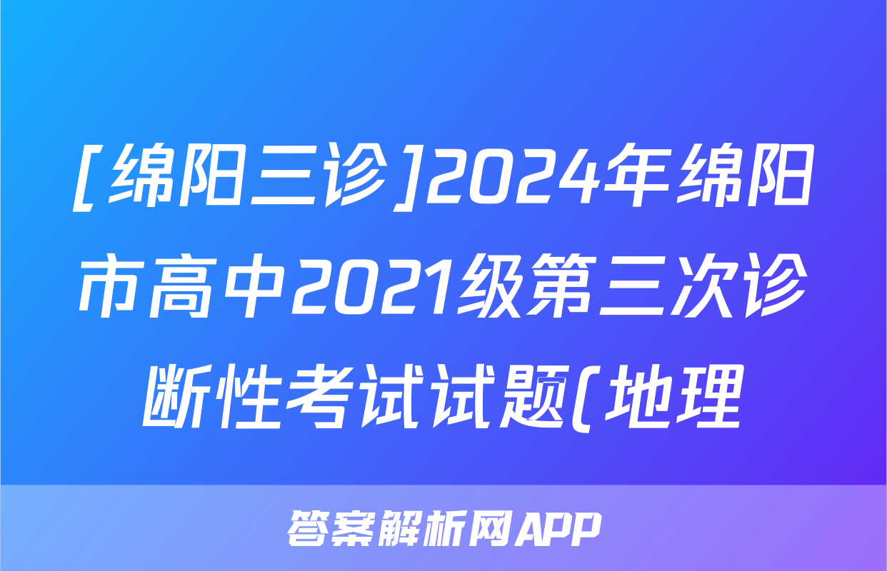 [绵阳三诊]2024年绵阳市高中2021级第三次诊断性考试试题(地理)正在持续更新,目前答案城为大家整理了相关试题及答案,供大家查缺补漏,高效提升成绩。