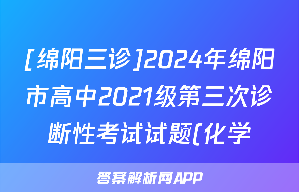 [绵阳三诊]2024年绵阳市高中2021级第三次诊断性考试试题(化学)正在持续更新,目前答案城为大家整理了相关试题及答案,供大家查缺补漏,高效提升成绩。