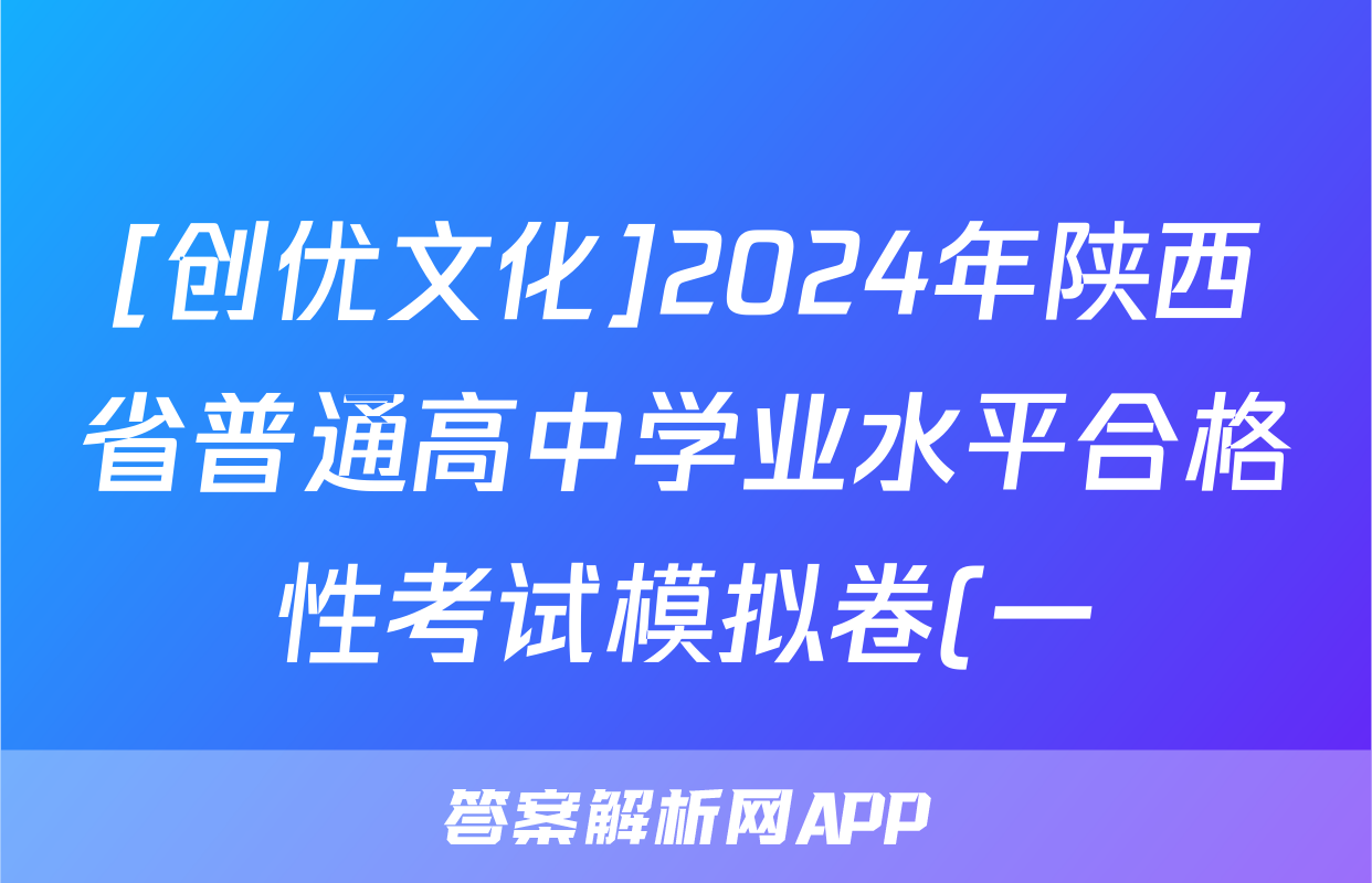 [创优文化]2024年陕西省普通高中学业水平合格性考试模拟卷(一)1答案(化学)正在持续更新,目前答案城为大家整理了相关试题及答案,供大家查缺补漏,高效提升成绩。