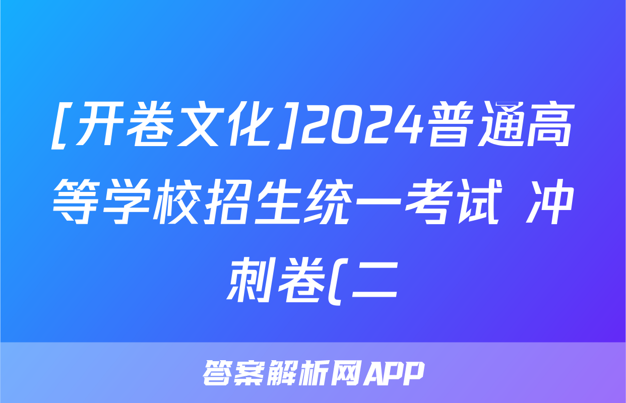 [开卷文化]2024普通高等学校招生统一考试 冲刺卷(二)2试题(政治)正在持续更新,目前答案城为大家整理了相关试题及答案,供大家查缺补漏,高效提升成绩。