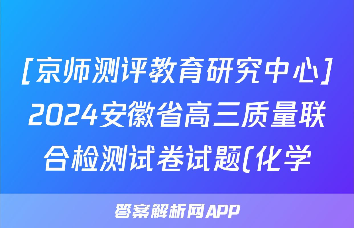 [京师测评教育研究中心]2024安徽省高三质量联合检测试卷试题(化学)正在持续更新,目前答案城为大家整理了相关试题及答案,供大家查缺补漏,高效提升成绩。