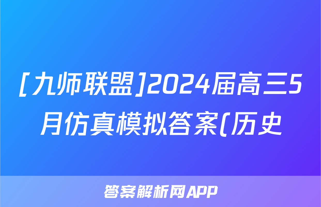 [九师联盟]2024届高三5月仿真模拟答案(历史)正在持续更新,目前答案城为大家整理了相关试题及答案,供大家查缺补漏,高效提升成绩。