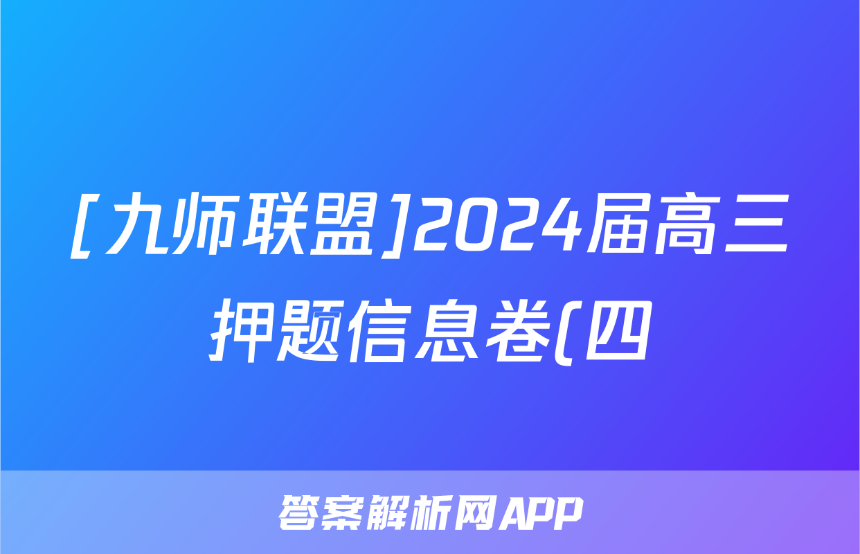 4、九师联盟高三押题信息卷2024四
