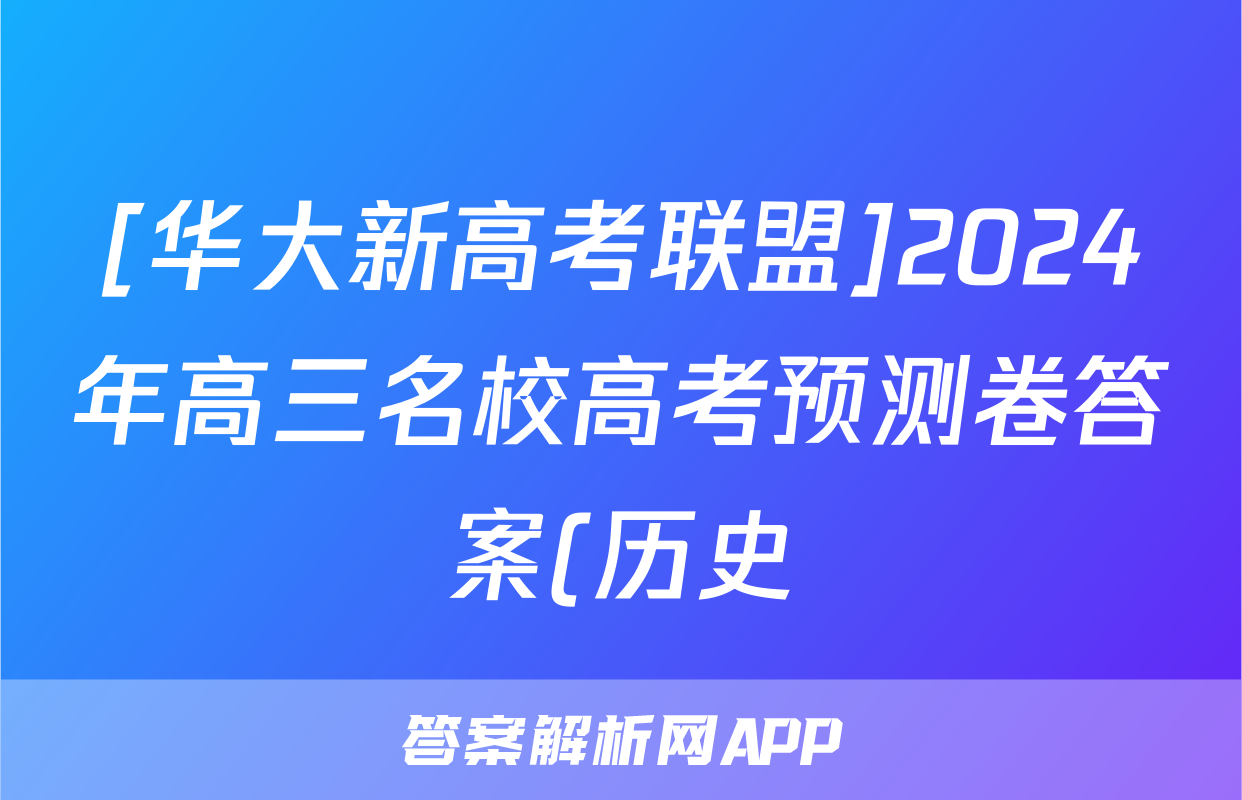 [华大新高考联盟]2024年高三名校高考预测卷答案(历史)正在持续更新,目前答案城为大家整理了相关试题及答案,供大家查缺补漏,高效提升成绩。