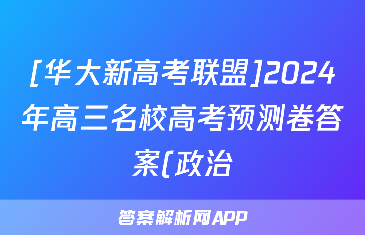 [华大新高考联盟]2024年高三名校高考预测卷答案(政治)正在持续更新,目前答案城为大家整理了相关试题及答案,供大家查缺补漏,高效提升成绩。