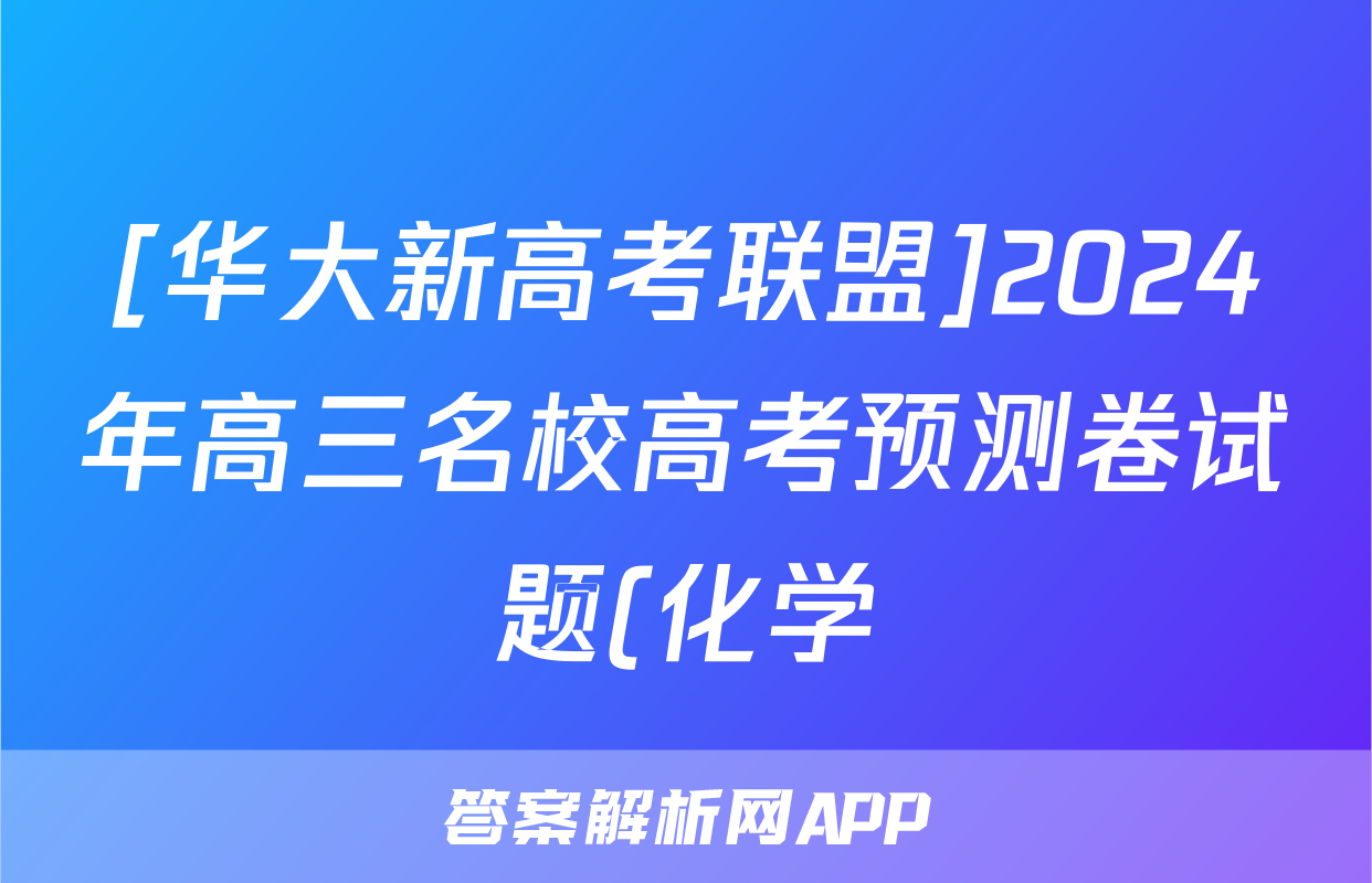 [华大新高考联盟]2024年高三名校高考预测卷试题(化学)正在持续更新,目前答案城为大家整理了相关试题及答案,供大家查缺补漏,高效提升成绩。