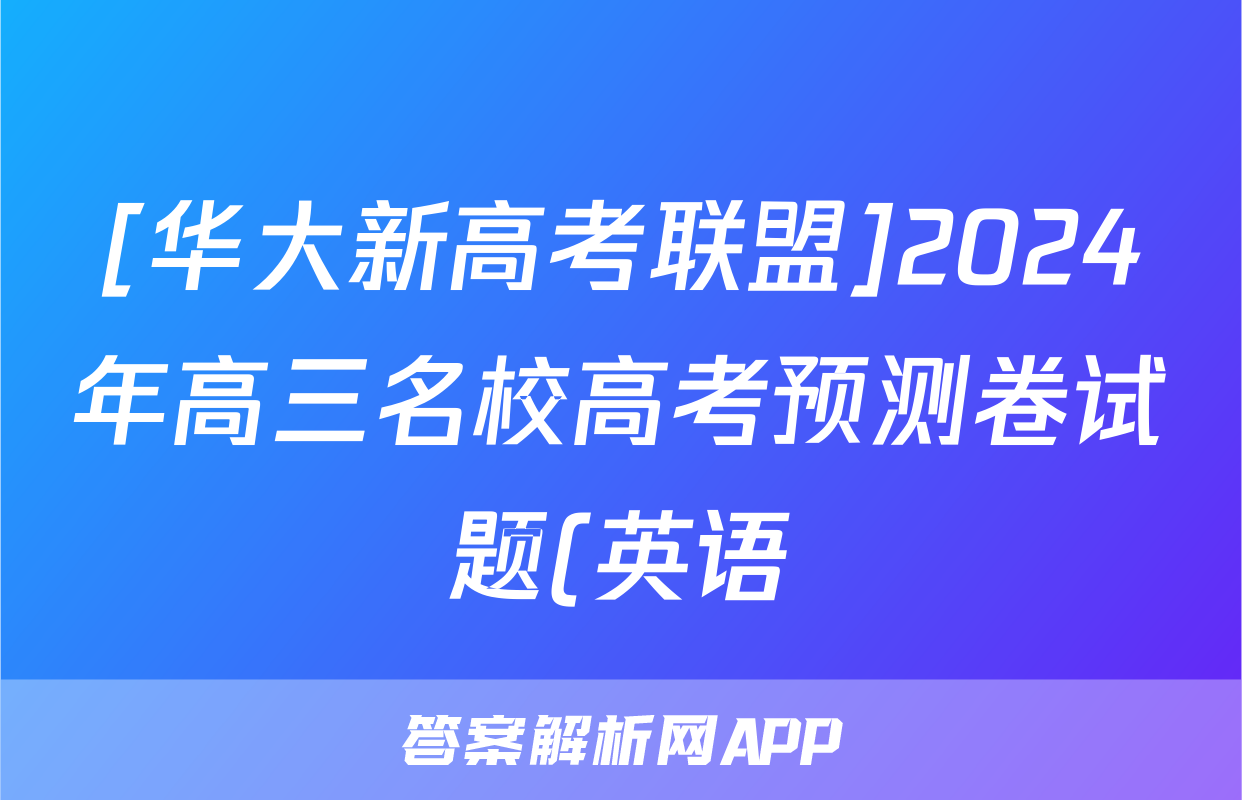 [华大新高考联盟]2024年高三名校高考预测卷试题(英语)正在持续更新,目前答案城为大家整理了相关试题及答案,供大家查缺补漏,高效提升成绩。