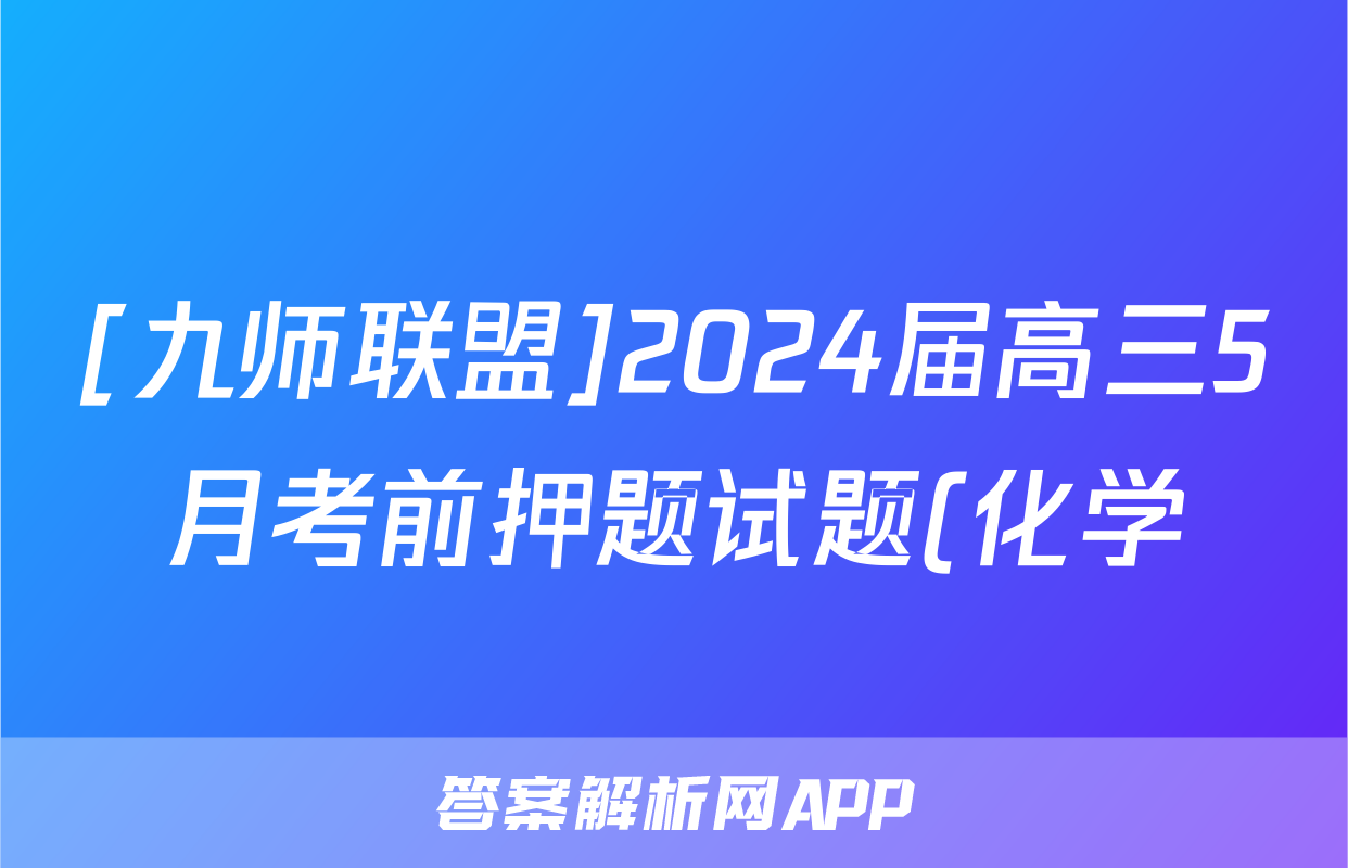 [九师联盟]2024届高三5月考前押题试题(化学)正在持续更新,目前答案城为大家整理了相关试题及答案,供大家查缺补漏,高效提升成绩。