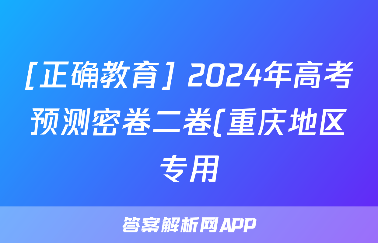 [正确教育] 2024年高考预测密卷二卷(重庆地区专用)地理试题正在持续更新,目前答案城为大家整理了相关试题及答案,供大家查缺补漏,高效提升成绩。