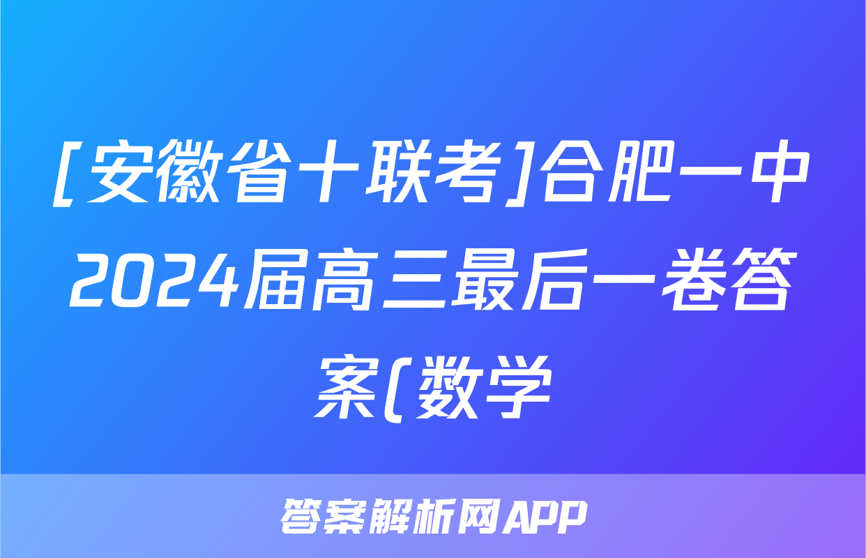 [安徽省十联考]合肥一中2024届高三最后一卷答案(数学)正在持续更新,目前答案城为大家整理了相关试题及答案,供大家查缺补漏,高效提升成绩。