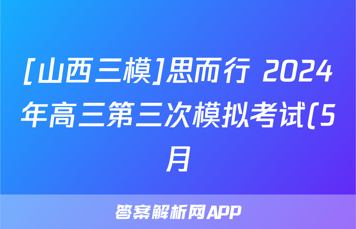 [山西三模]思而行 2024年高三第三次模拟考试(5月)试题(政治)正在持续更新,目前答案城为大家整理了相关试题及答案,供大家查缺补漏,高效提升成绩。
