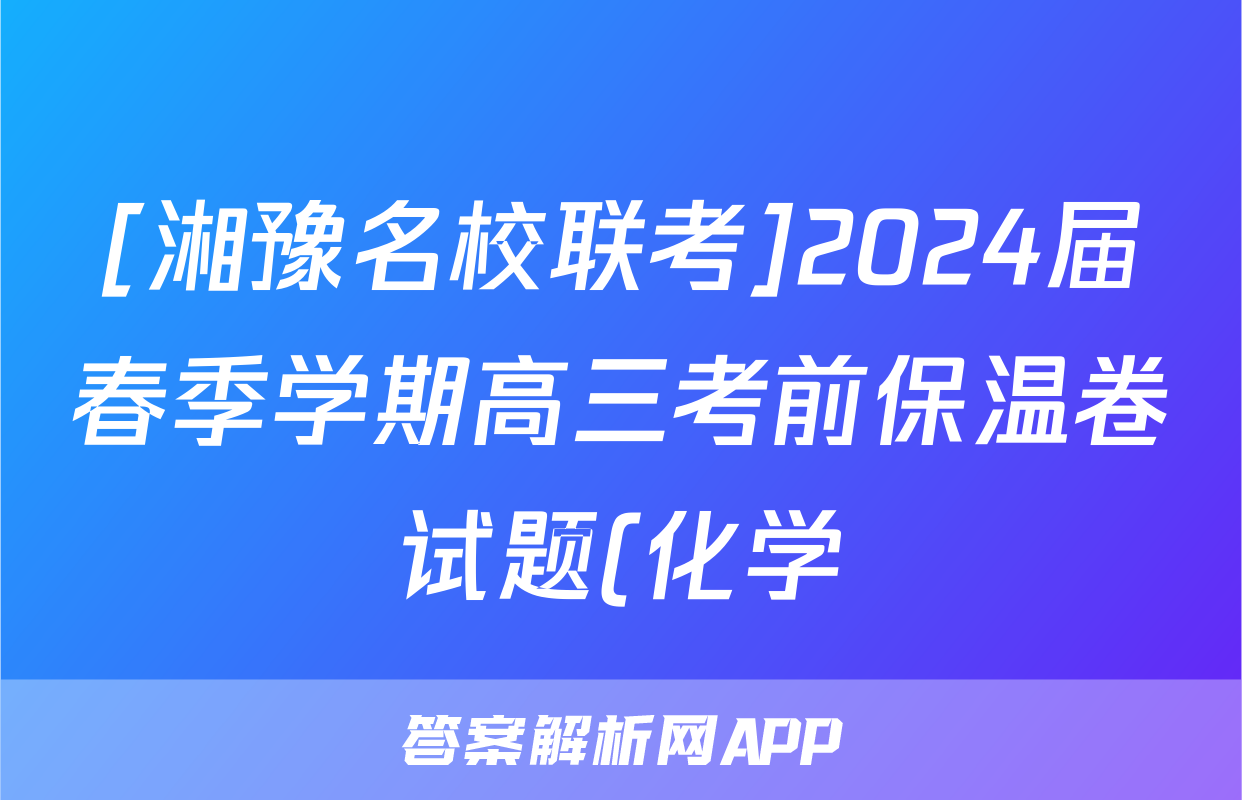 [湘豫名校联考]2024届春季学期高三考前保温卷试题(化学)正在持续更新,目前答案城为大家整理了相关试题及答案,供大家查缺补漏,高效提升成绩。
