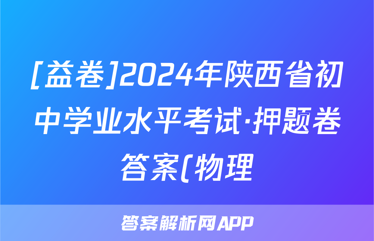[益卷]2024年陕西省初中学业水平考试·押题卷答案(物理)正在持续更新,目前答案城为大家整理了相关试题及答案,供大家查缺补漏,高效提升成绩。
